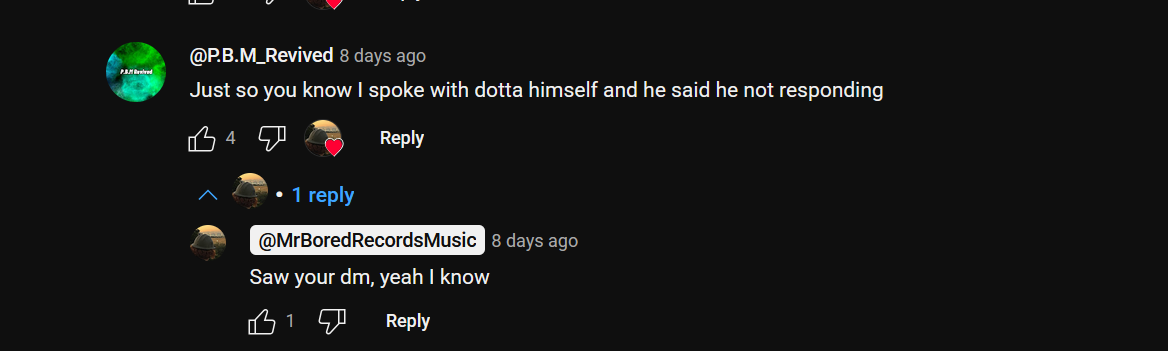 Mr Bored smoked my ass but I'm too chicken shit to respond. Once he becomes more popular than me I probably will, for now I'll just shitpost on youtube and accuse him of being racist or sum shit. Because that's how we used to do it in the hood.